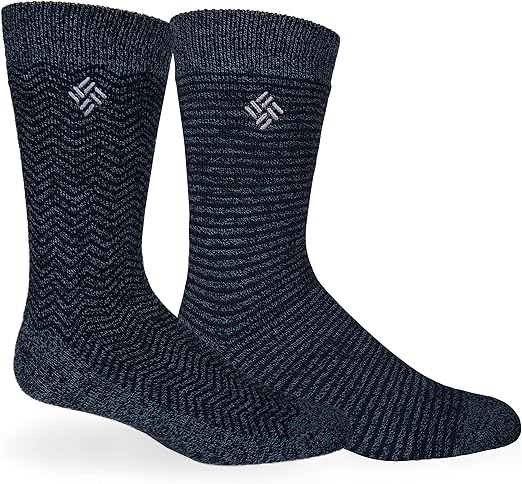 Columbia Medium Weight Pattern Thermal Crew Socks 2 Pair, Navy, One Size